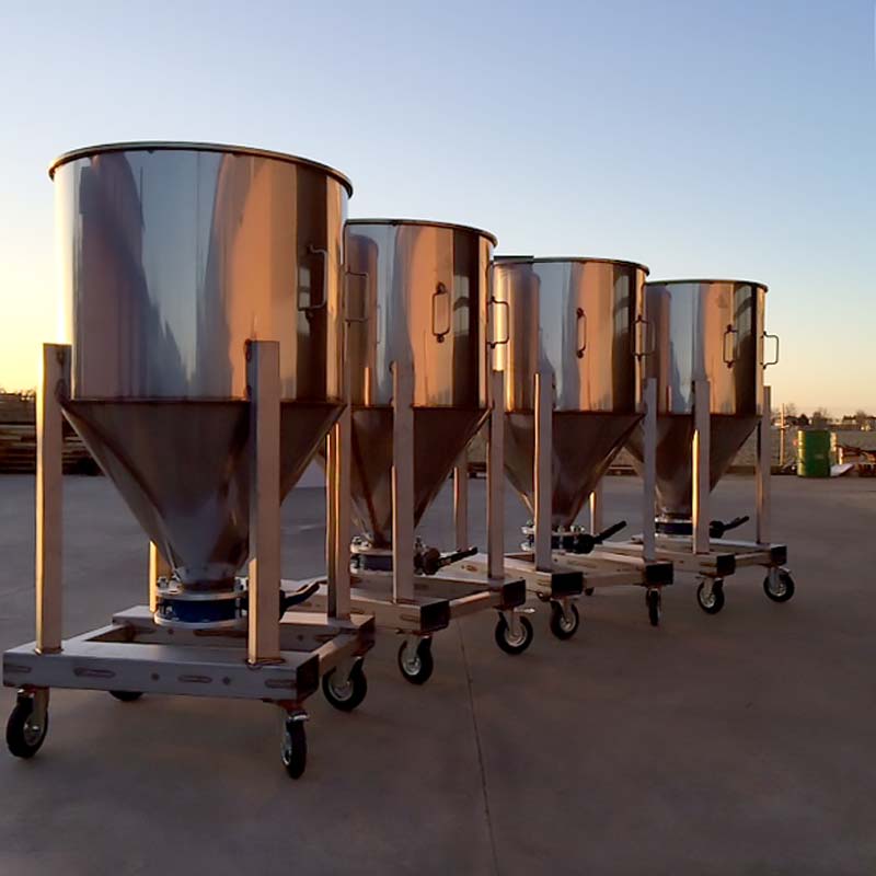 Nos trémies sont fabriquéesdans différentsmatériaux : acier au carbone, acier inoxydable (AISI304 ou AISI316), aluminium.