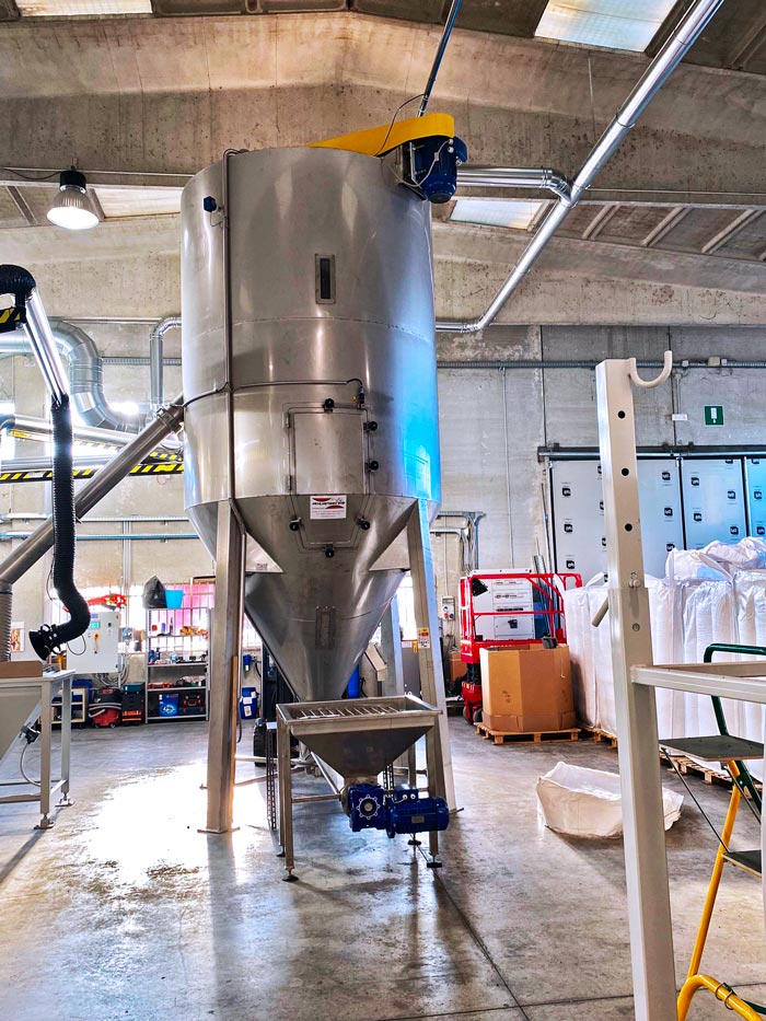 MÉLANGEURS INDUSTRIELS POUR L'HOMOGÉNÉISATION ET LE STOCKAGE DE MATÉRIAUX DIVERS TELS QUE LES GRANULÉS, LES REBROYÉS, LES FLOCONS, LES MASTERS, LES POUDRES